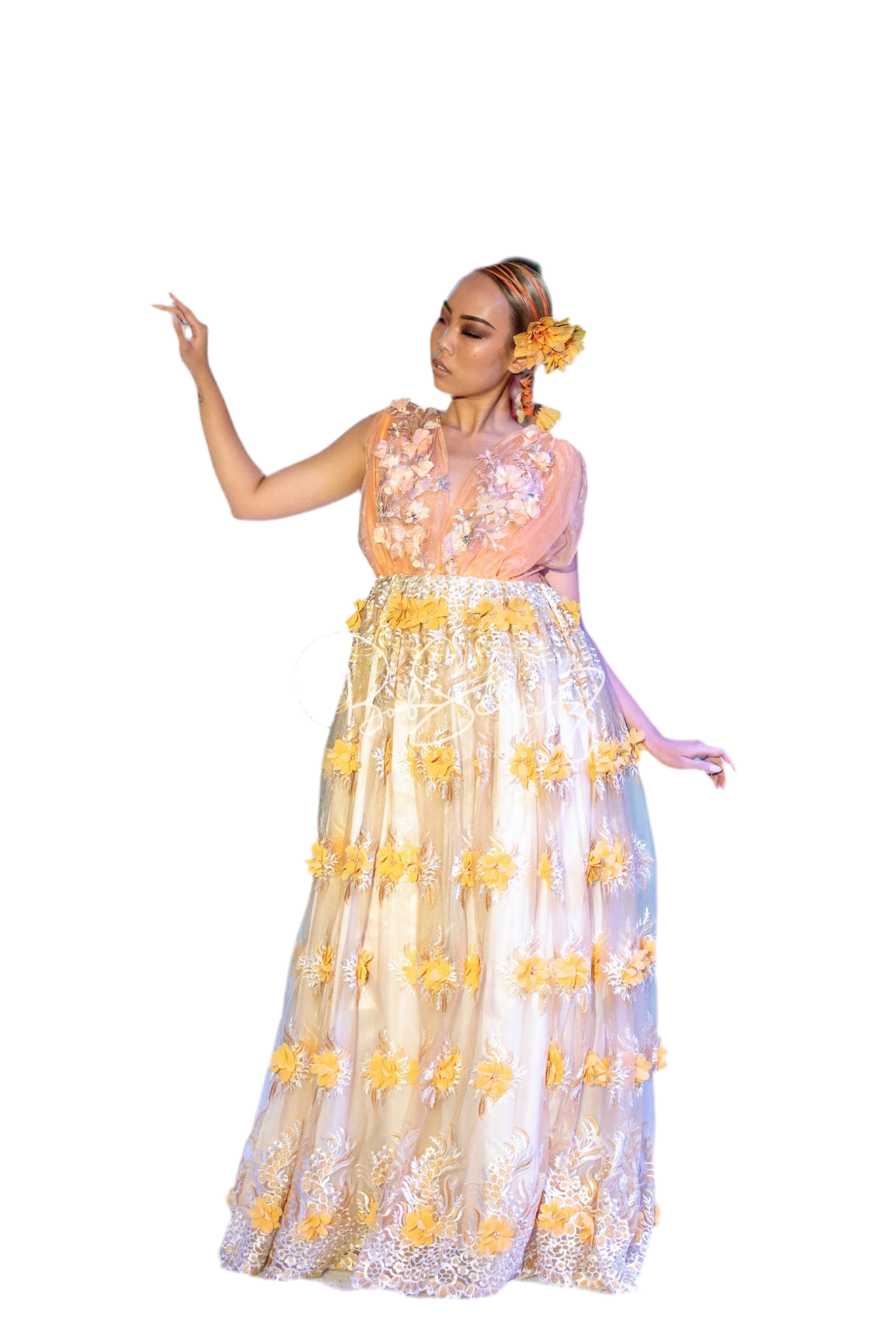 This exclusive  Denisha Julea Couture Gown is the only one of its kind . Delicate embroidery all through the gown. Has a vintage feel.